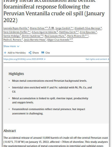 Título: Heavy metal accumulation and benthic foraminiferal response following the Peruvian Ventanilla crude oil spill (January 2022)