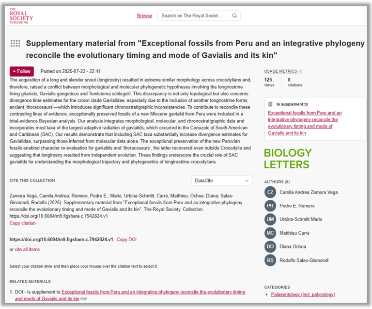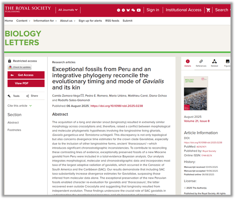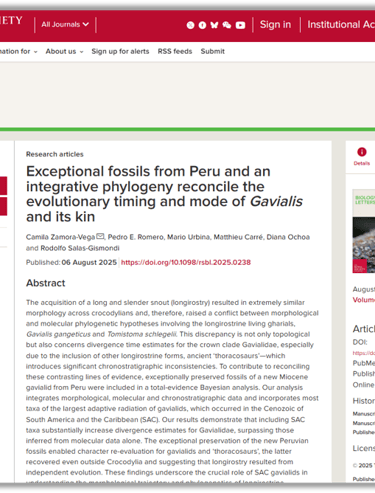 Título: Exceptional fossils from Peru and an integrative phylogeny reconcile the evolutionary timing and mode of Gavialis and its kin