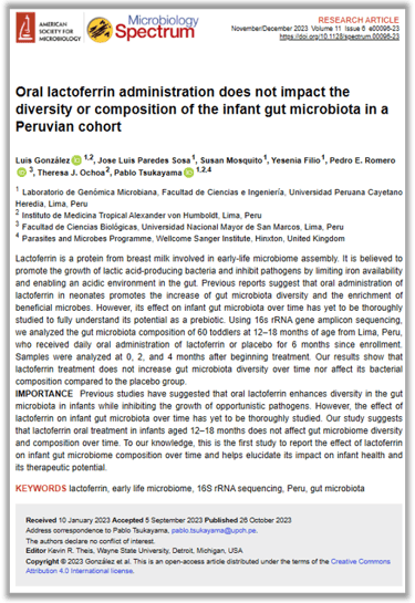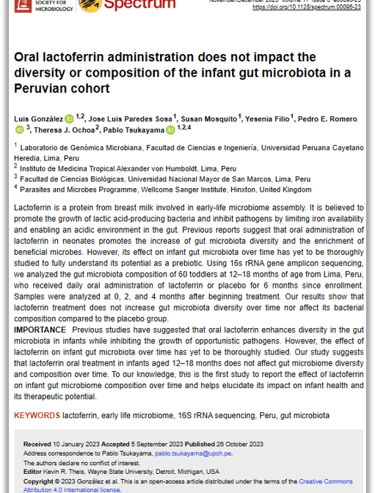 Título: Oral lactoferrin administration does not impact the diversity or composition of the infant gut microbiota in a Peruvian cohort