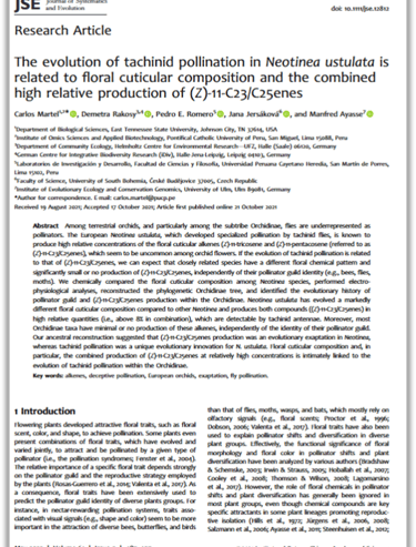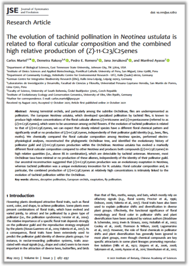 Título: The evolution of tachinid pollination in Neotinea ustulata is related to floral cuticular composition and the combined high relative production of (Z)-11-C23/C25enes