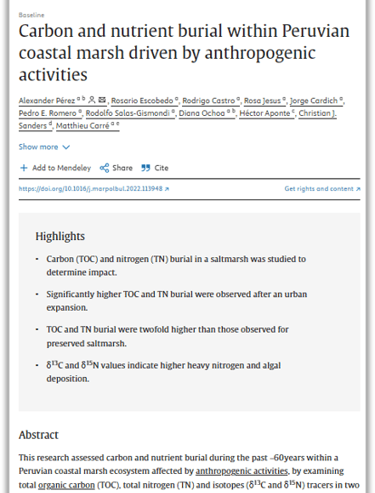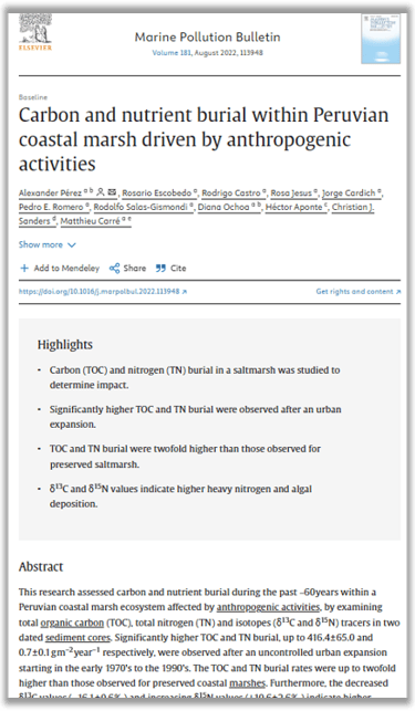 Título: Carbon and nutrient burial within Peruvian coastal marsh driven by anthropogenic activities