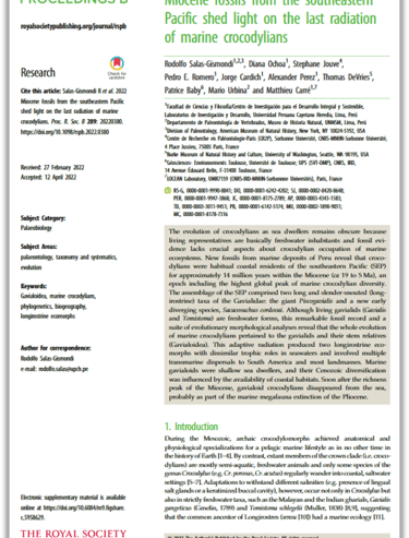 Título: Miocene fossils from the southeastern Pacific shed light on the last radiation of marine crocodylians