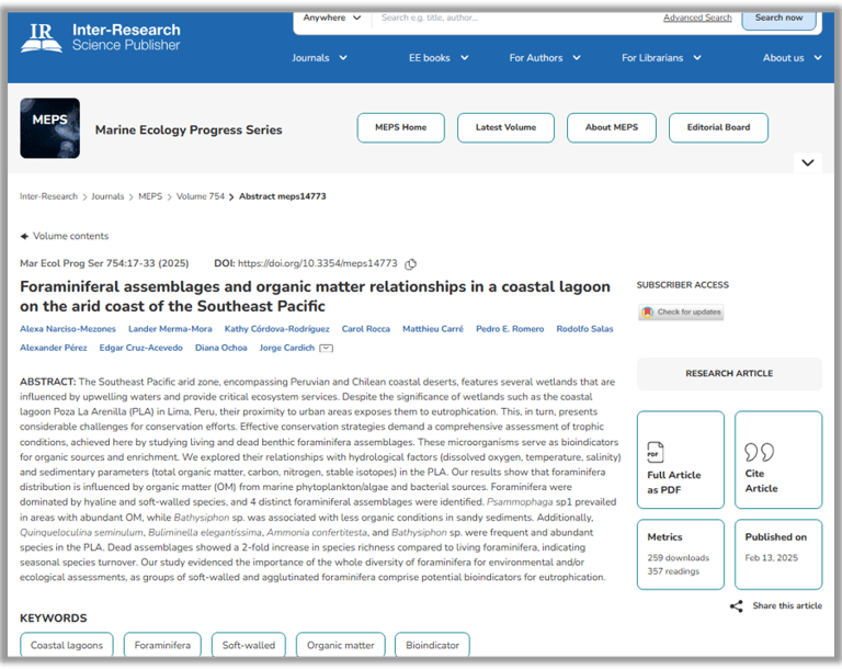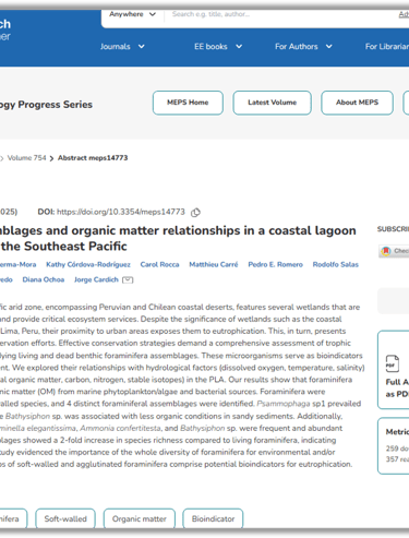 Título: Foraminiferal assemblages and organic matter relationships in a coastal lagoon on the arid coast of the Southeast Pacific
