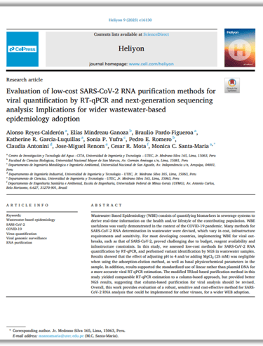 Título: Evaluation of low-cost SARS-CoV-2 RNA purification methods for viral quantification by RT-qPCR and next-generation sequencing analysis: Implications for wider wastewater-based epidemiology adoption