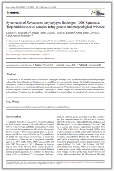 Título: Systematics of Stenocercus chrysopygus Boulenger, 1900 (Squamata, Tropiduridae) species complex using genetic and morphological evidence