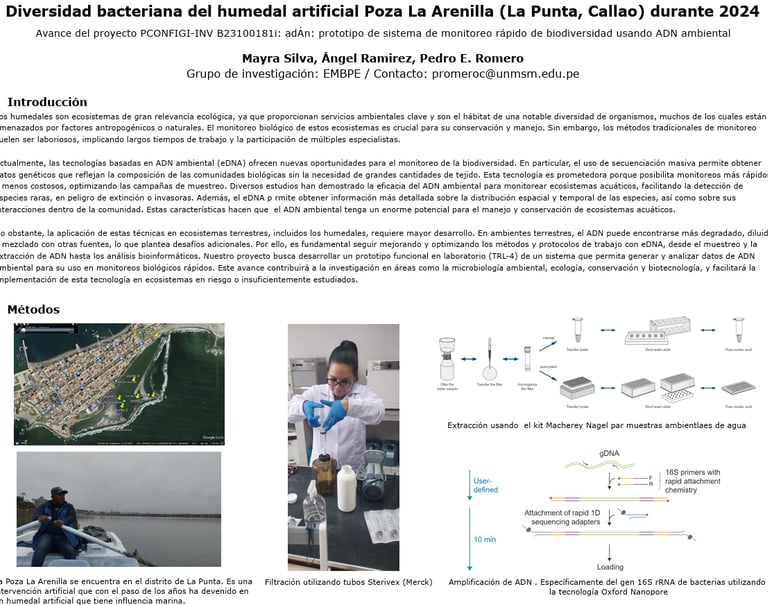 Título: Diversidad bacteriana del humedal artificial Poza La Arenilla (La Punta, Callao) durante 2024